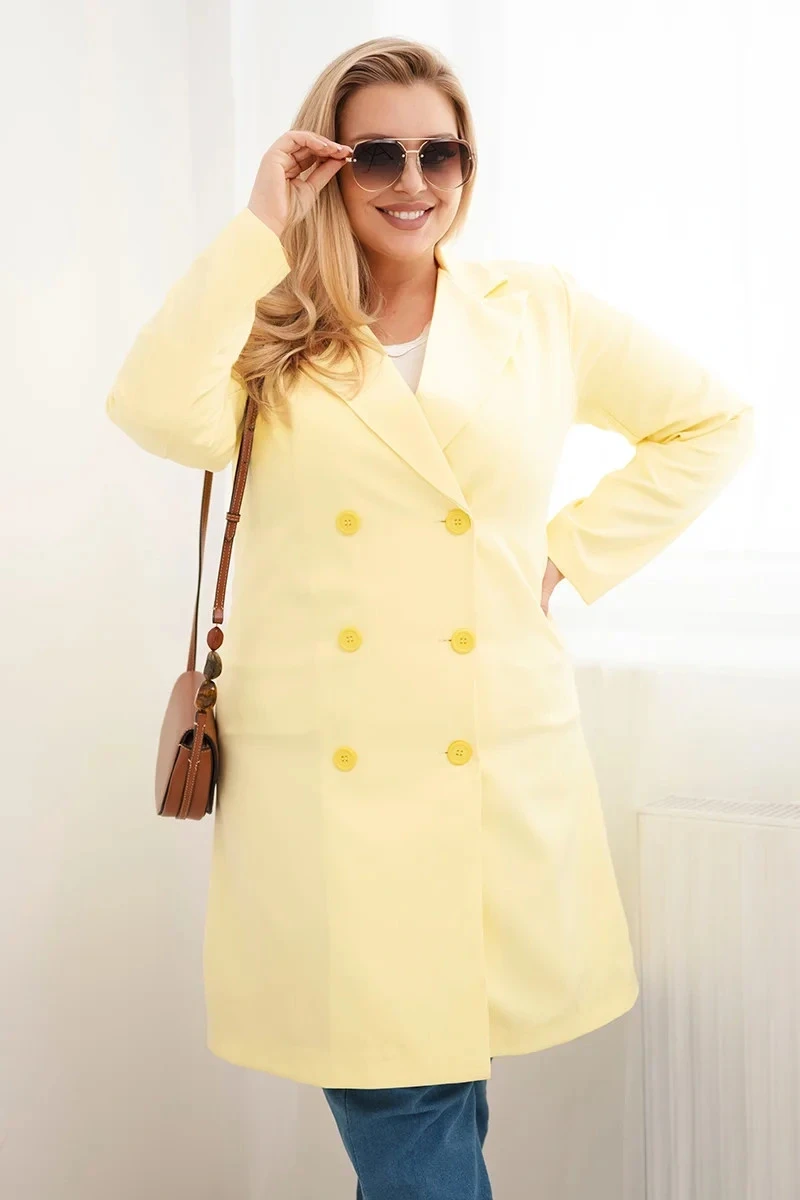 Dámský kabát Plus Size dvouřadový s límcem žlutý