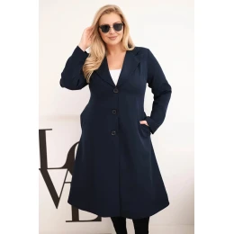 Dámský kabát Plus Size klasický s knoflíky a límečkem modrý