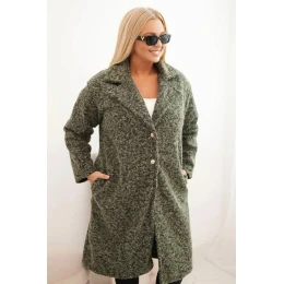 Dámský kabát Plus Size s vlnou a velkým límcem khaki