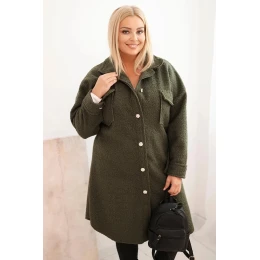 Dámský kabát Plus Size s vlnou na knoflíky s kapsami a límcem khaki