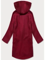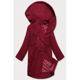 Dámský kabát plus size v bordó barvě s kapucí (2728)