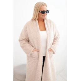 Dámský kabát Plus Size z viskózy bez zapínání s kapsami béžový