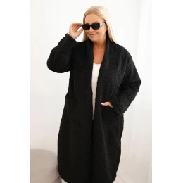 Dámský kabát Plus Size z viskózy bez zapínání s kapsami černý