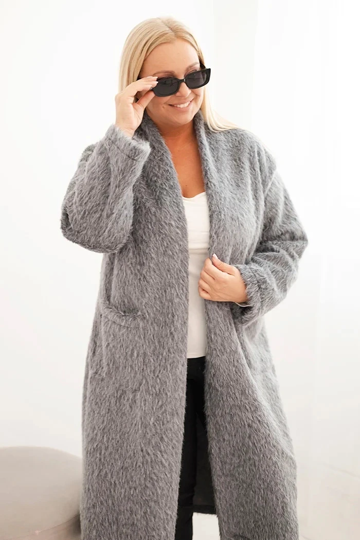 Dámský kabát Plus Size z viskózy bez zapínání s kapsami šedý