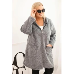 Dámský kabát Plus Size z viskózy na zip s kapucí šedý