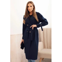 Stylový dámský kabát klasického střihu je nezbytným prvkem každého dámského šatníku. Model s efektním, širokým límcem, vázaným páskem v pase a dvojitým řadou knoflíků odkazuje na nadčasový styl trenčkotů. Délka nad kolena a zúžení v pase krásně podtrhují siluetu, přidávající celku eleganci. Rukávy s ozdobným manžetou a jemným nařasením na ramenou dodávají lehkost a ženský charakter.