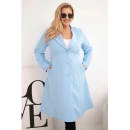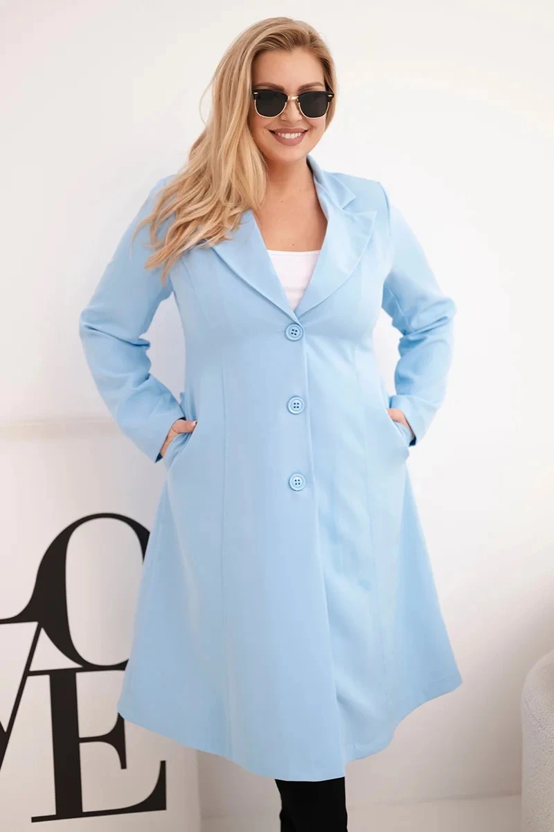 Dámský klasický kabát Plus Size s knoflíky a límcem modrý