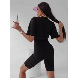 - skládající se z oversized trička s krátkým rukávem a vypasovaných cyklistických šortek,