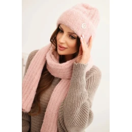 Dámský komplet čepice a dlouhého šálu z měkké příze pudrově růžový