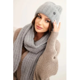 Dámský komplet čepice a dlouhého šály z měkké příze šedý