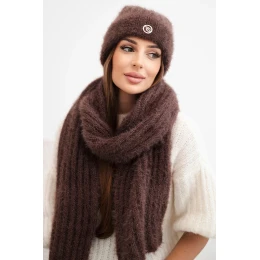 Dámský komplet čepice a dlouhý šátek z měkké příze hnědý