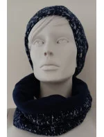 Dámský komplet čepice komínovou šálou Patrizia Tmavě modrá s bílou - Kamea