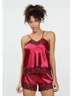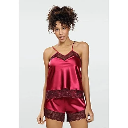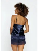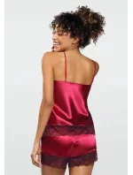 Košilka pyžama má úzká ramínka, jejichž délku je možné nastavit. Výstřih zdobí efektní krajka s květinovým motivem. Krátké kalhoty mají volný střih. Nohavice jsou olemovné krajkou.