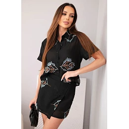 Dámský komplet košile s krátkým rukávem a sukně-šortky vyšívané černá