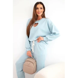 Tento roztomilý dámský sportovní komplet masełko okouzluje svou originalitou a pohodlím nošení. Mikina s jemným výřezem ve tvaru srdce na výstřihu dodává dívčí kouzlo a odlišuje tento model od klasických sportovních sad. Kalhoty s elastickým pasem a stahovacími manžetami zaručují dokonalé přizpůsobení a pohodlí po celý den.