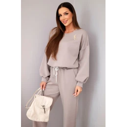 Tento pohodlný dámský teplákový komplet je ideální nabídkou pro ženy, které si cení pohodlí a módního vzhledu. Mikina s dlouhým rukávem a elastickým lemem dole zajišťuje dokonalé přizpůsobení postavě, zatímco jemný detail v podobě ozdobné aplikace u výstřihu přidává stylový akcent.