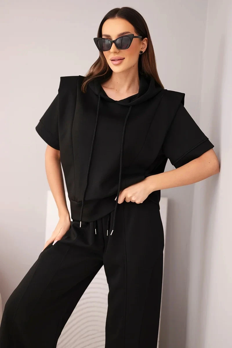 Dámský komplet máslový mikina s kapucí a volné kalhoty se stahováním černý