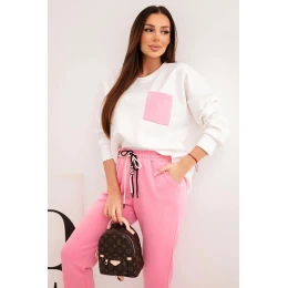 Dámský komplet máslový s kontrastní kapsou světle růžový