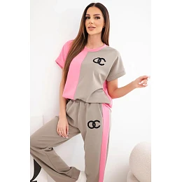 Dámský komplet máslový s oversize mikinou a širokými kalhotami růžový + fango
