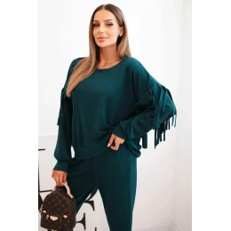 Dámský komplet máslový s třásněmi na rukávech mořský
