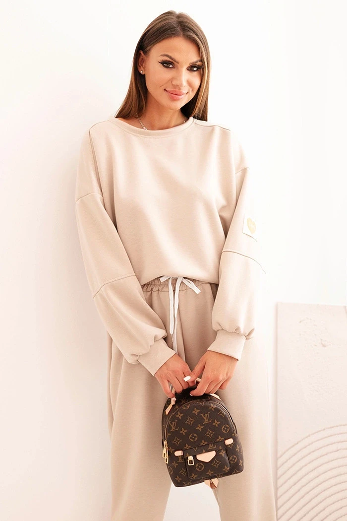 Dámský komplet máslový s volnou mikinou a kalhotami s nápisem LOVE béžový