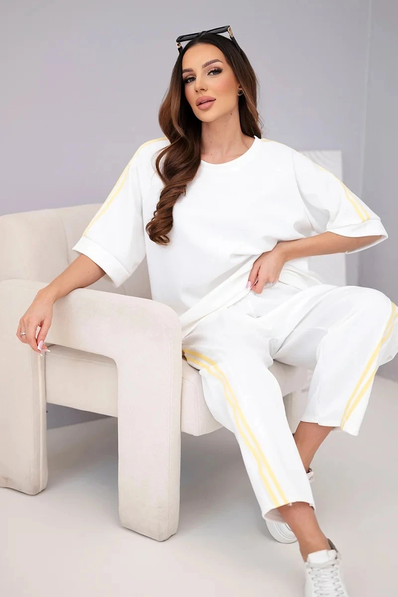 Dámský komplet máslový z viskózy mikina a kalhoty s lampasy bílý