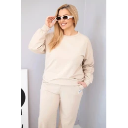 Dámský komplet Plus Size bavlněný s volnou mikinou a kalhotami s širokým nohavicí béžový