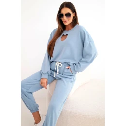 Dámský komplet s máslem a výřezem ve tvaru srdce džínový