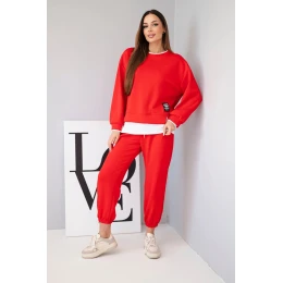 Dámský komplet s máslovou barvou s volnou mikinou a tepláky červený
