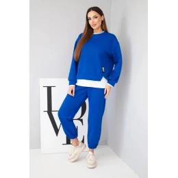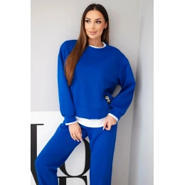 Dámský komplet s máslovou barvou s volnou mikinou a tepláky modrý