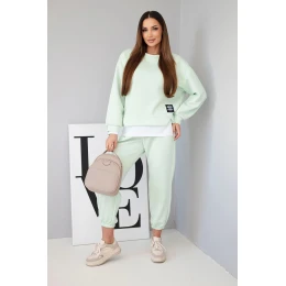 Dámský komplet s máslovou barvou, volnou mikinou a tepláky jasně mátová