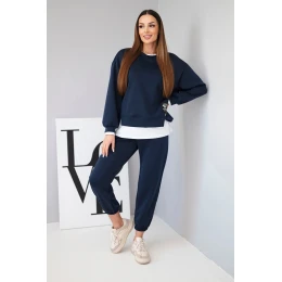 Dámský komplet s máslovou mikinou a volnými tepláky modrý