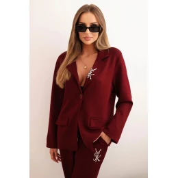 Dámský komplet s viskózou s ozdobami a elastickými kalhotami bordový
