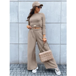 Dámský komplet širokých kalhot a crop topu ASTRAL ALLURE tmavě béžový FashionStreet AY0905