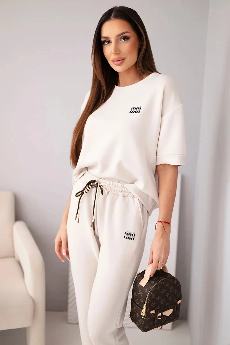 Stylový dámský komplet je vynikající volbou pro ženy, které si cení pohodlí a módního, minimalistického stylu. Sada se skládá z volné blůzky s krátkým rukávem a pohodlných kalhot s elastickým pasem. To je ideální dámský komplet na každodenní nošení – hodí se jak na procházku, nákupy, tak i do domácího prostředí.