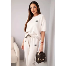 Dámský komplet viskózový máslový s krátkým rukávem a kalhotami s ohrnutým lemem béžový