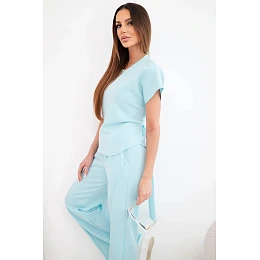 Dámský komplet z materiálu masełko s krátkým rukávem a kalhotami se širokou nohavicí mentolový