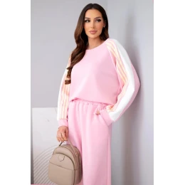 Dámský komplet z měkkého materiálu s lampasem a nápletem světle růžový