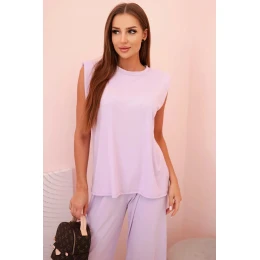 Dámský komplet z viskózy bez rukávů a rovnými kalhotami světle fialový