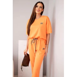 Dámský komplet z viskózy máslový s krátkým rukávem a kalhotami s ohrnutým lemem oranžový
