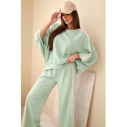 Dámský komplet z viskózy máslový se širokými nohavicemi a volnou blůzou tmavě mátový