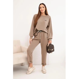 Dámský komplet z viskózy s mikinou a kalhotami fango masełkowy