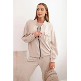 Dámský komplet z viskózy s rozepínací mikinou a kalhotami béžový