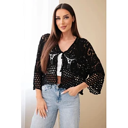 Dámský letní krajkový svetr s knoflíky a dlouhým rukávem černý