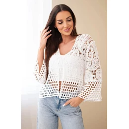 Lehký a stylový dámský ажurový svetr je ideální volbou pro ženy, které ocení módní vzhled a pohodlí při nošení. Model vyniká efektním, dekorativním vzorem pletení, který dodává celku jemný a ženský charakter. Ažurová struktura zajišťuje prodyšnost svetru a skvěle se hodí do teplejších dnů i jako doplněk outfitů v přechodném období.