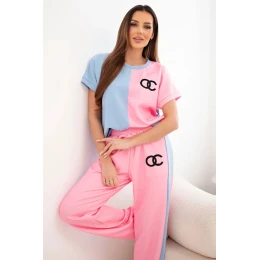Dámský máslový komplet s oversize mikinou a širokými kalhotami světle růžová + modrá