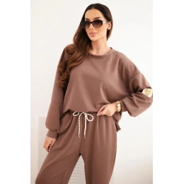 Dámský máslový komplet s volnou mikinou a kalhotami s nápisem LOVE čokoládový