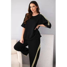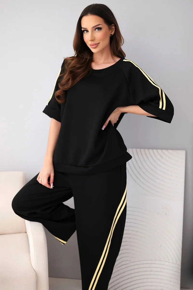 Dámský máslový komplet z viskózy mikina a kalhoty s lampasy černý