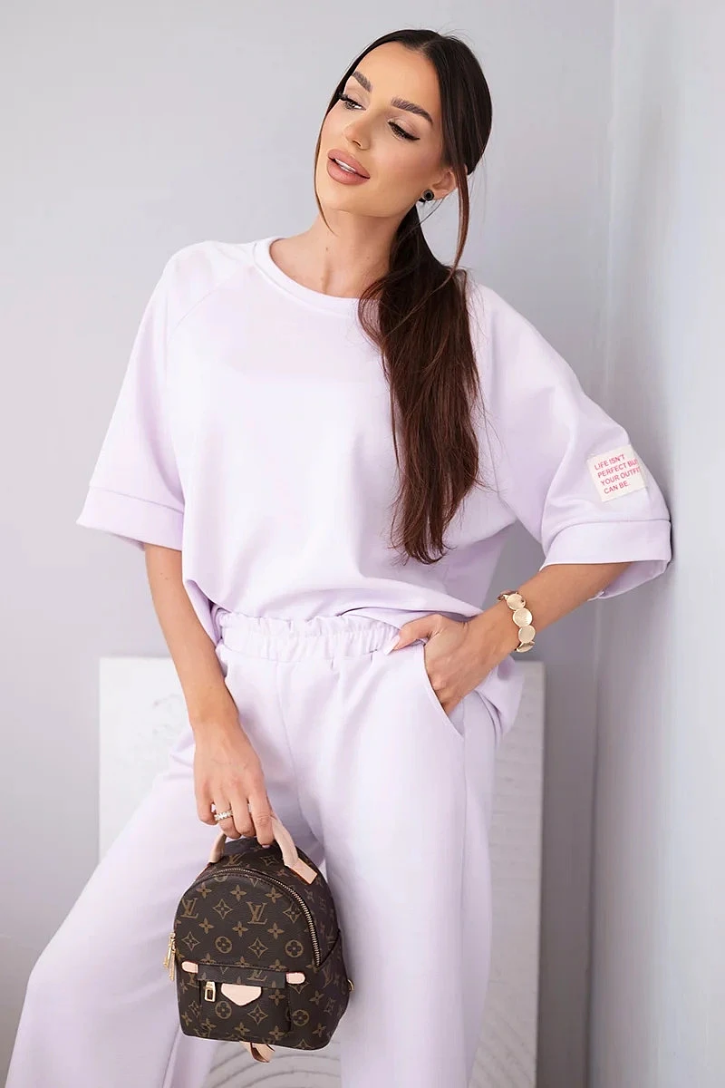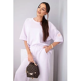 Dámský máslový komplet z viskózy mikina a široké kalhoty světle fialový