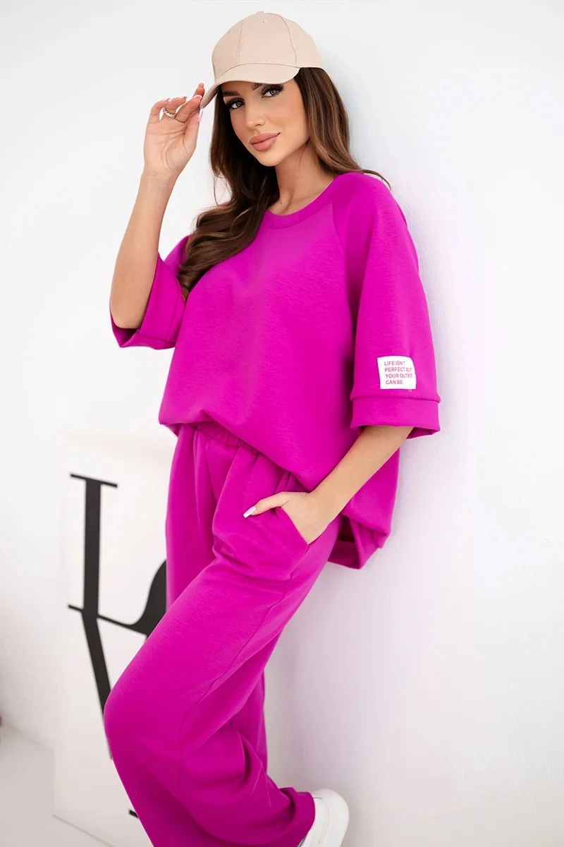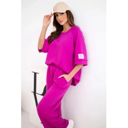 Dámský máslový komplet z viskózy mikina a široké kalhoty tmavě fialový